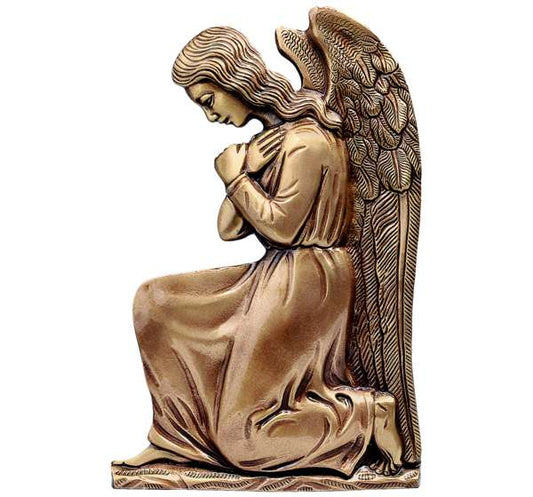 Figura de Ángel arrodillado en Bronce Fundido de 32 cm / Imagen Religiosa para Lápidas