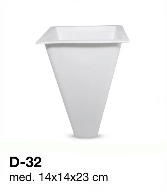 El depósito de plástico D 32 es una solución resistente, ligera y práctica diseñada para su instalación en jarrones de cementerio, jardinería o uso decorativo. Su forma cónica —con boca más ancha que la base— garantiza una fijación estable y segura para arreglos florales naturales o artificiales.