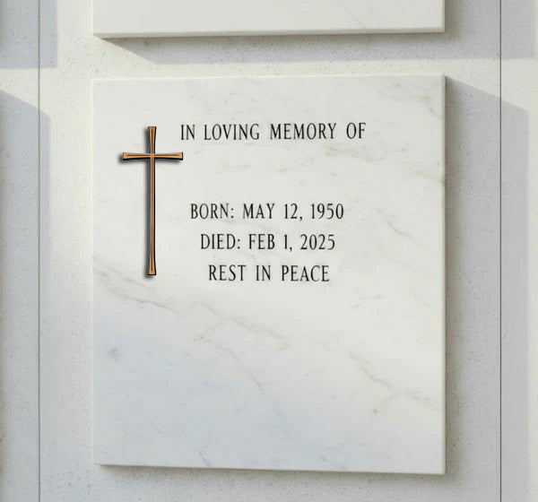 Realza la elegancia y el significado de cualquier lápida con nuestra Cruz de bronce, una pieza decorativa diseñada para perdurar. Fabricada en bronce, ofrece un acabado impecable, resistente y preparado para mantener su belleza en exteriores durante años. Su diseño limpio y tradicional la convierte en una opción perfecta para aportar distinción y simbolismo en lápidas, nichos o columbarios.