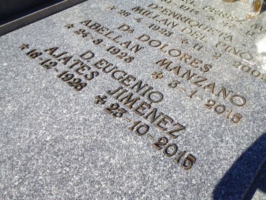 Cada inscripción se fabrica con precisión artesanal, asegurando líneas limpias, tipografías nítidas y una perfecta integración con la lápida existente.