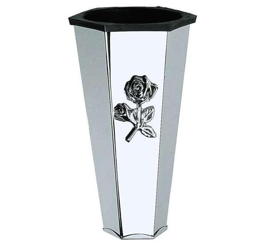 Búcaro de acero inoxidable con rosa de 17 cm | Jarrón Funerario para Lápidas y Nichos – Memorial Spain
