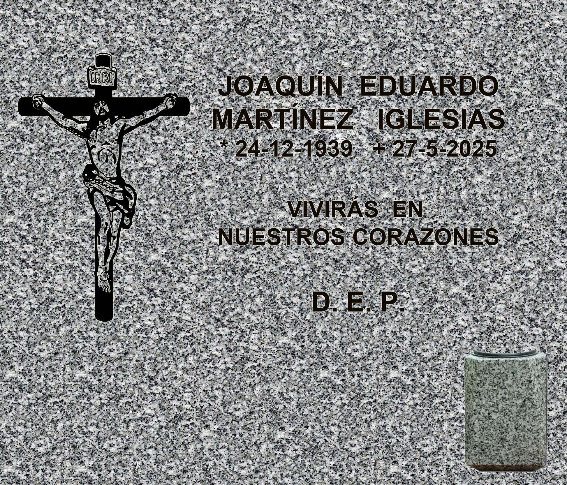 Atención: Licencia de colocación en el cementerio no incluida. En algunos cementerios es obligatorio el pago de una tasa para la colocación de lápida (Consultar en el teléfono de atención al cliente; 659 053 236 o en el mail info@memorialspain.com).
